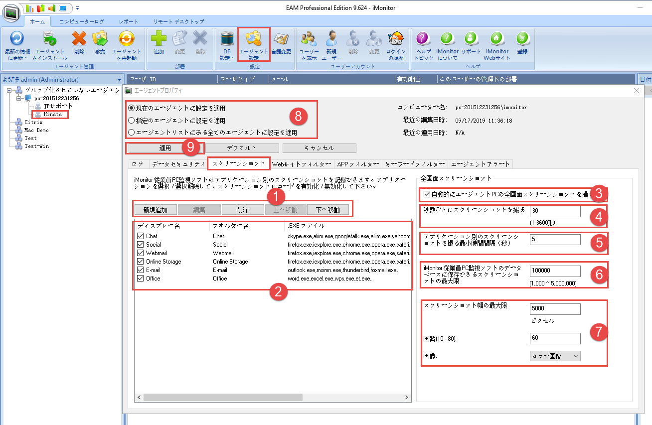 3.「自動的にエージェントコンピューターの全画面スクリーンショットを撮る」にチェックを入れ/解除して、自動PC画面をスクリーンショットを有効化/無効化することができます。