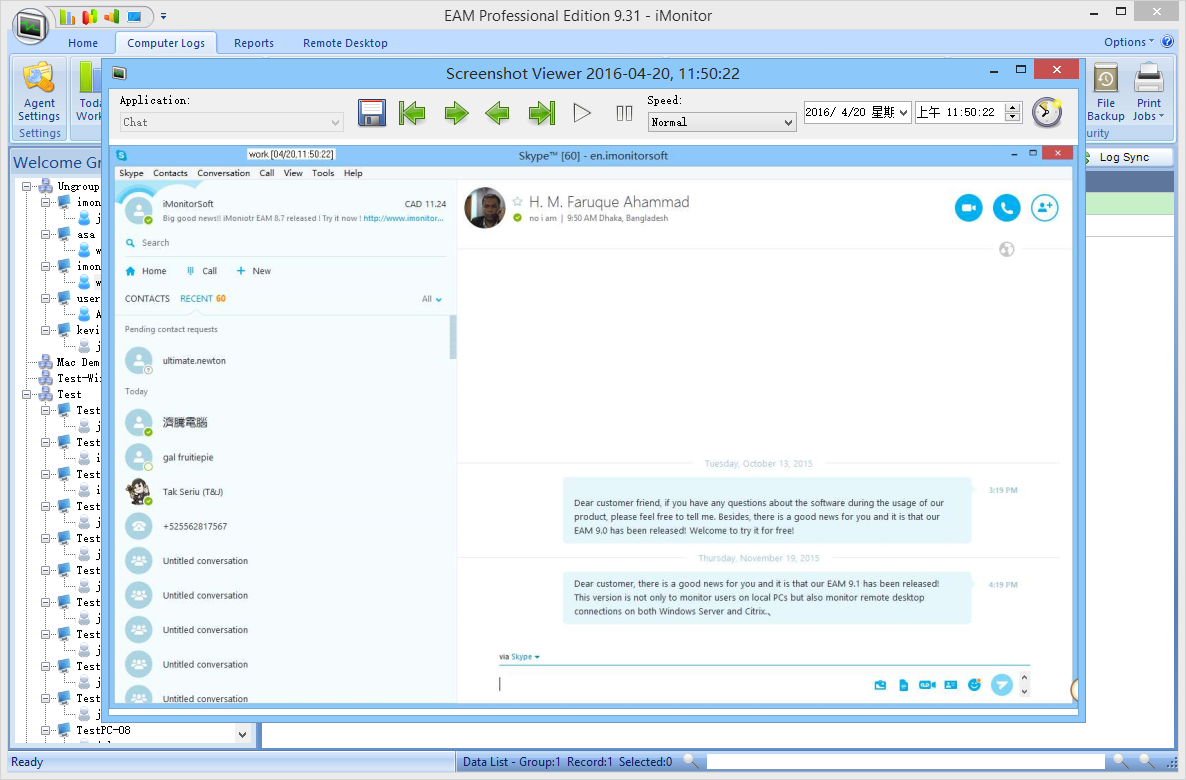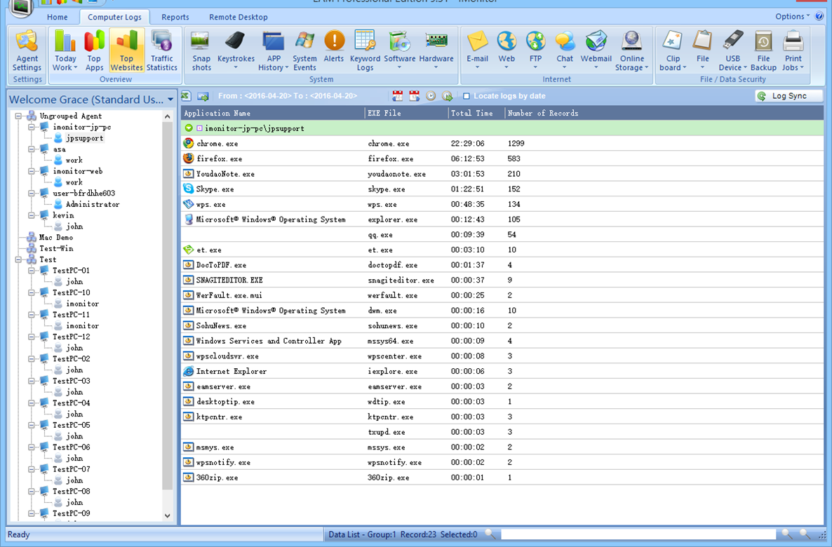 This computer-monitoring software runs in total stealth and secretly monitors employees. The software is not visible in the system tray, desktop, system processes or other areas of the computer. iMonitor has a small memory footprint and does not slow the monitored machine. Catherling Dan