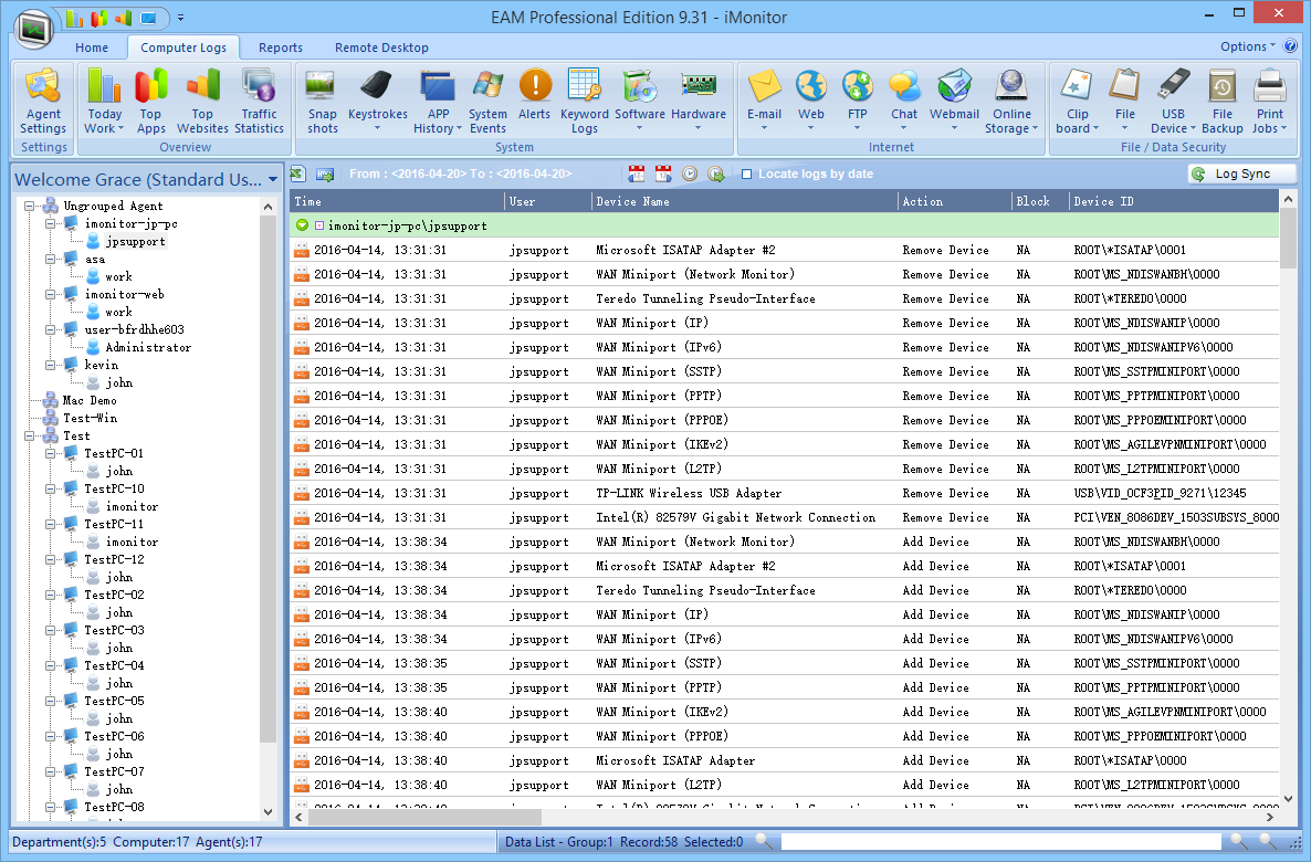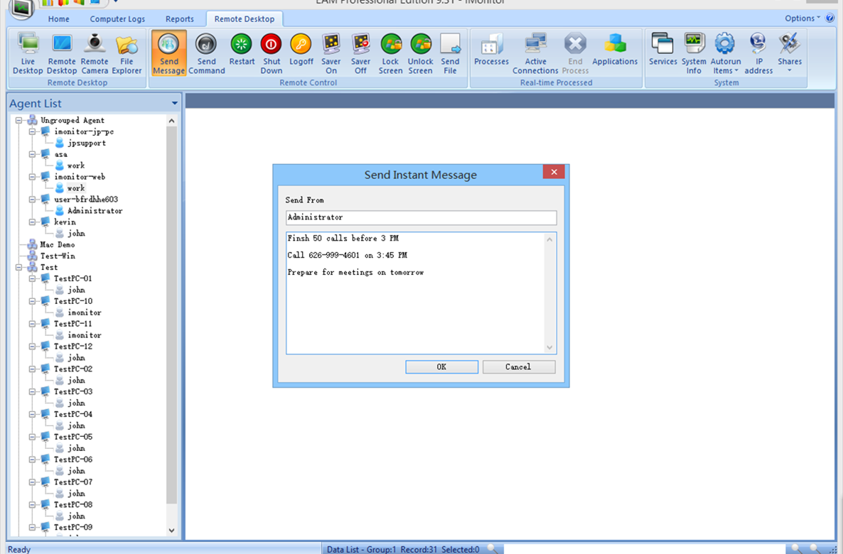 Centralized Management Console Remote Management Send Instant Message to User Offline/Online Monitoring Database Backup Password Protection Stealth Mode Centralized Database Audit Company Hardware Asset Audit Company Software Asset Remote Agent Installation
