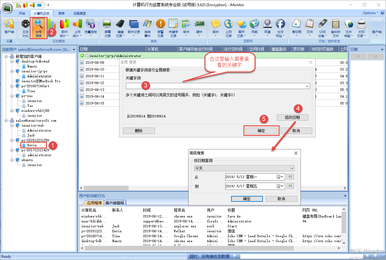 6. 在弹出的页面中选择需要查看的用户,如果需要全部选择,则点击左下角的“全选”,然后点击“确定”。