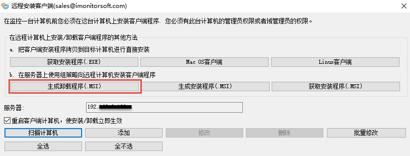 3.用生成的卸载程序通过组策略命令远程卸载客户端