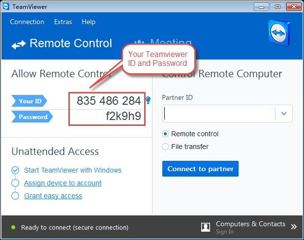 2. 等待我們的技術團隊安排然後給我們您的Teamviewer ID和密碼