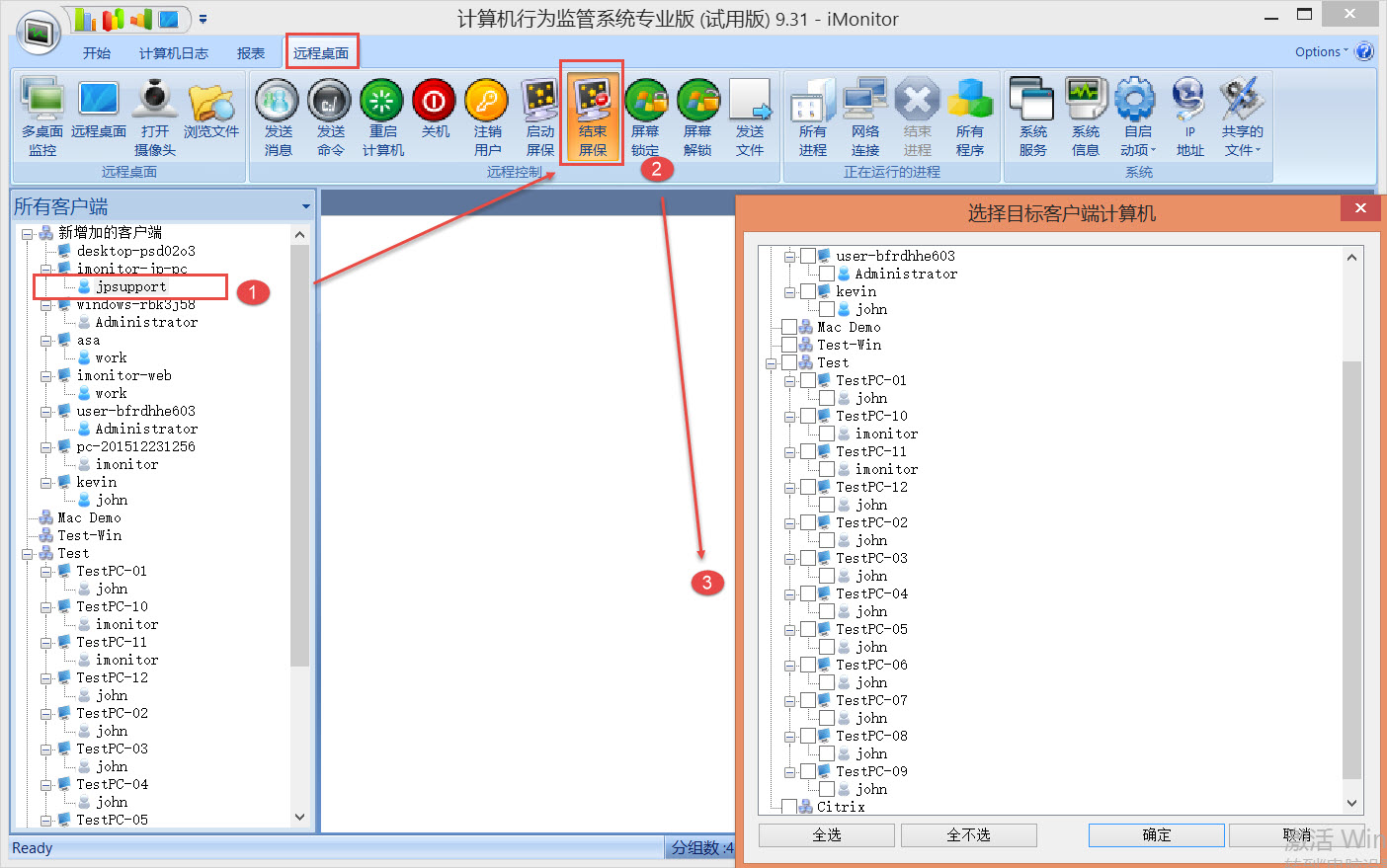 按一下當前使用者欄任意一使用者,點亮遠端控制欄按鈕。(如遠端控制欄按鈕為點亮狀態,則此步驟可以省略。)